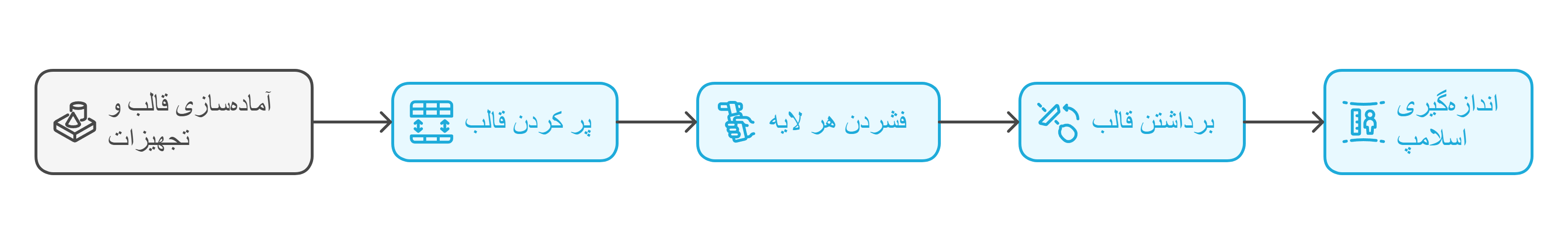 پر کردن قالب: بتن را در سه لایه مساوی داخل قالب بریزید و هر لایه را با میله تراکم فشار دهید.