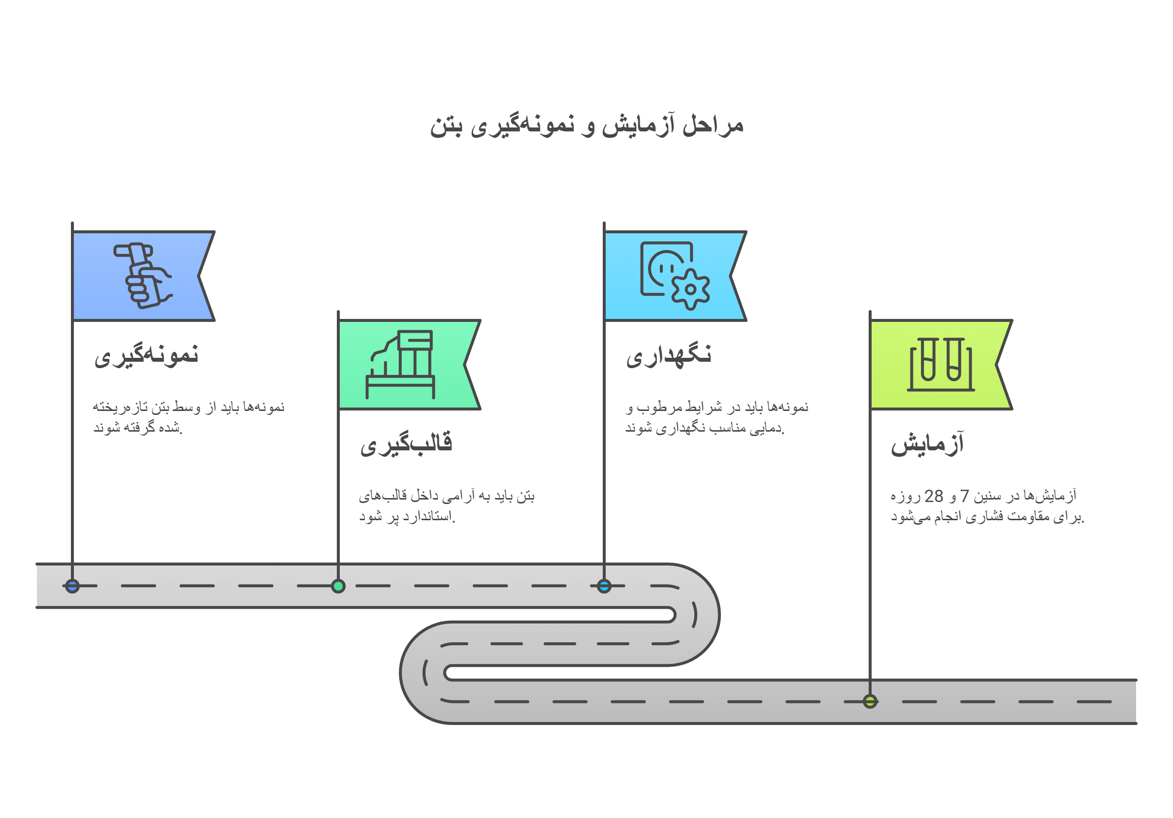 مراحل اصلی مرتبط با آزمایش و نمونهگیری بتن